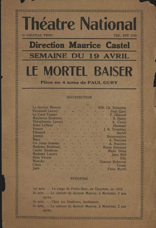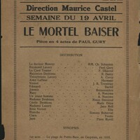 Page couverture du programme de spectacle comprenant « Le mortel baiser », [192?]