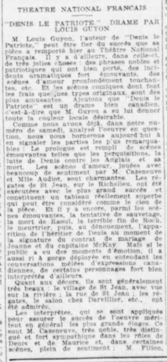 « Le drame de Louis Guyon est une pièce à voir ». La Presse (Montréal, Québec), 16 septembre 1902, p. 3.